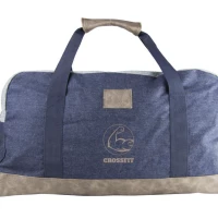 Sac de sport ou sac de voyage en coton 350gr/m2 avec finitions jean.Marquage sérigraphique entre les anses , format 150 x 90 mm.