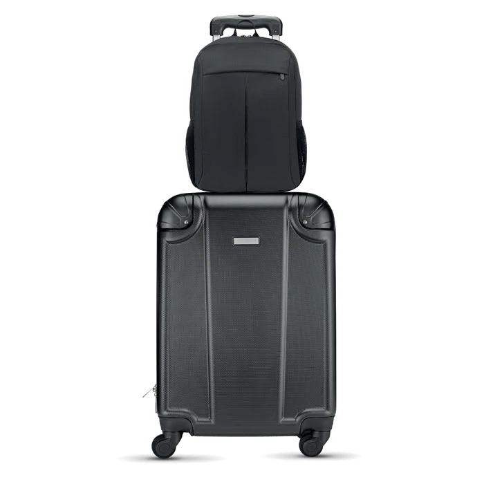 Sac à dos adaptable sur trolley, idéal en déplacement. Réalisé en polyester 360D bicolore.Il accueille le nécessaire pour un salon ou congrès et un ordinateur 15" ou une tablette. Pratique avec sa poche zippée intérieure et frontale, il est aussi confortable avec son dos et ses lanières renforcées.