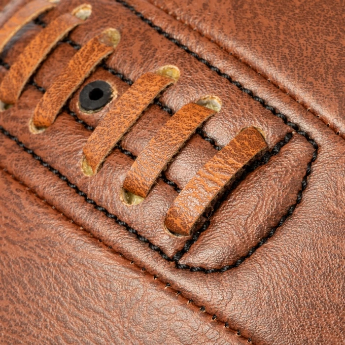 Retro design football made of resistant PU, imitation of leather. Design inspired by the old leather footballs and reinforced in the valve with a cord in the same material. Ideal for display or to enjoy the game. Presented deflated and in an individual recycled bag.Size: 5/ PU/ PVC
