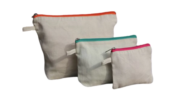 Trousse en coton, couleur naturelle extérieure, doublure colorée, en harmonie avec la gamme 17117.Dimensions idéales pour ranger les différents fils de smartphone, ordinateur etc...