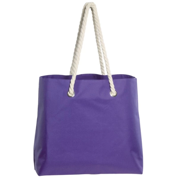 Sac de plage en polyester 300D, proposé en 10 coloris.Fermeture velcros, poignées cordes en coton et œillets métal.Marquage 1 ou 2 faces