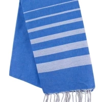 Excellente qualité de coton pour cette fouta avec bandes lurex argentées .Nos foutas étant direct fabricant, nos prix sont les meilleurs du marché, avec ou sans broderie .