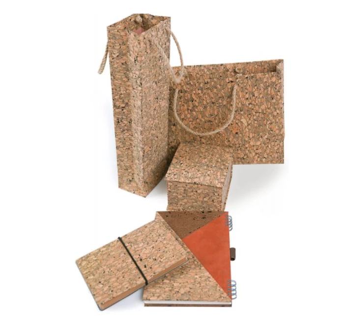 Voici une gamme complète faite en papier, façon liège compressé.Sacs boutiques, sacs cadeaux, coffrets ou encore carnet, vous pourrez créer un véritable univers dédié à la nature.