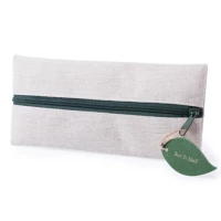 Trousse en toile de jute et coton avec fermeture éclair . Marquage sous la fermeture , dimensions 90 x 20 mm.