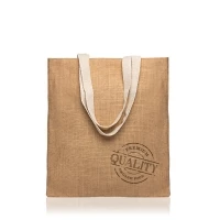 Sac shopping avec compartiment principal ouvert.Sac en toile de jute et anses coton .