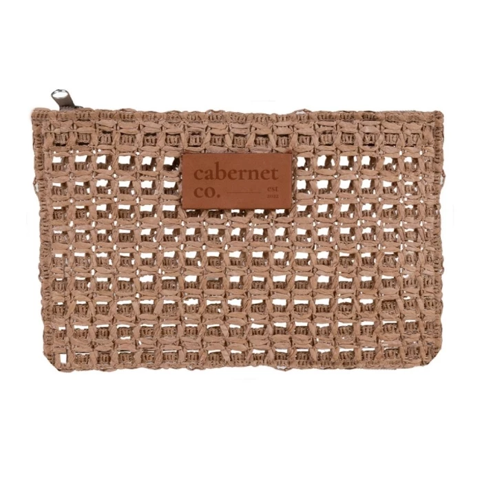 Trousse en raphia, 248gr/m2, fibre naturelle obtenue à partir des feuilles du palmier, dotée d"une etiquette pour le marquage de votre visuel en 1 couleur 40 x 20 mm